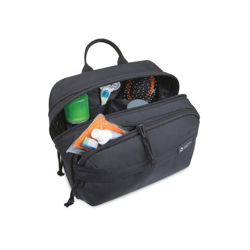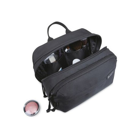 Kosmetyczka z uchwytem, przestronna przegroda główna z kieszeniami wewnątrz, kieszeń z przodu, wykonana z RPET, dzięki zastosowaniu technologii śledzącej AWARE™ wykorzystane włókna są identyfikowalne z pochodzenia oraz wyprodukowane zostały zgodnie z ideą zrównoważonego rozwoju