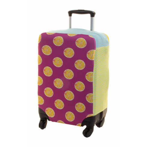 Personalizowany, poliestrowy pokrowiec na bagaż zapinany na rzep. Pasuje do dużych walizek o wymiarach do 50x70x30 cm. Z grafiką sublimacyjną na całej powierzchni. Min. ilość: 50 szt.