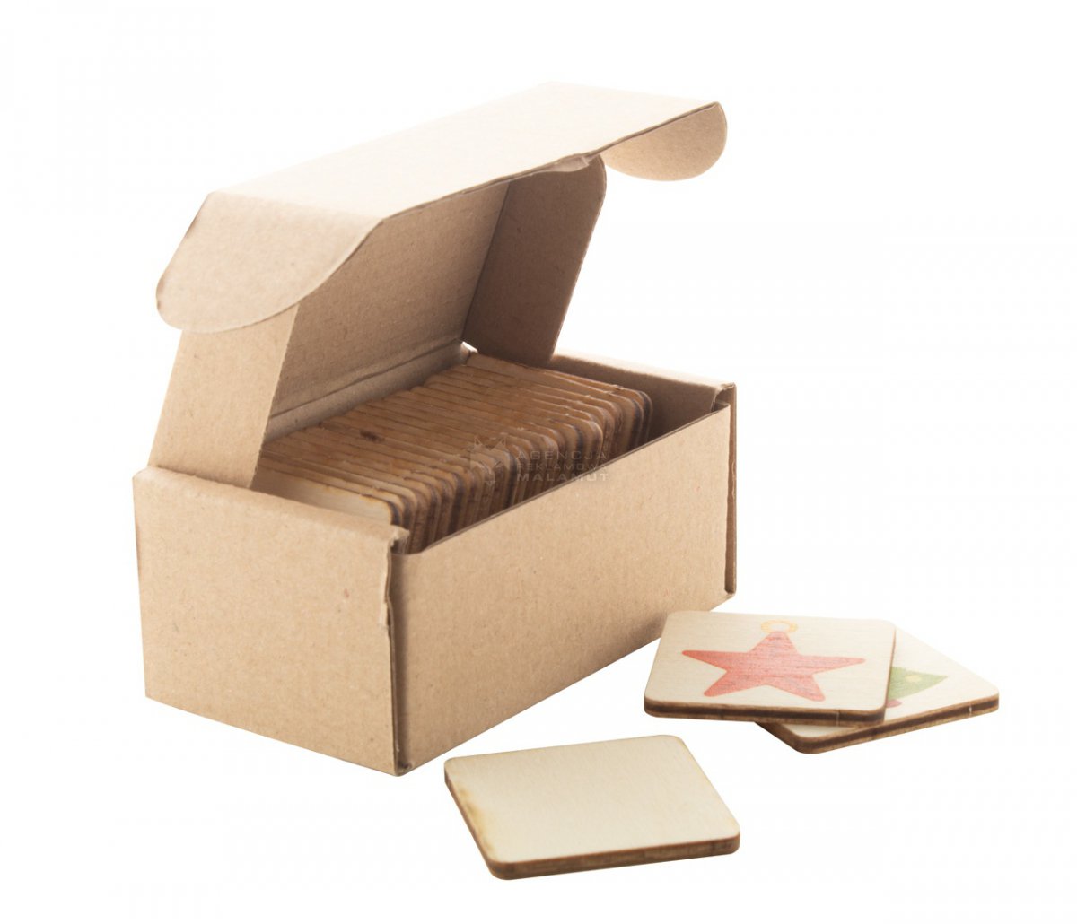 Gra memory z laminowanego drewna brzozowego z motywem Świątecznym. Z 24 płytkami (40x40 mm). Cena obejmuje 1 kolorowy nadruk logo na tylnej stronie wszystkich płytek. Min. ilość: 50 sztuk.