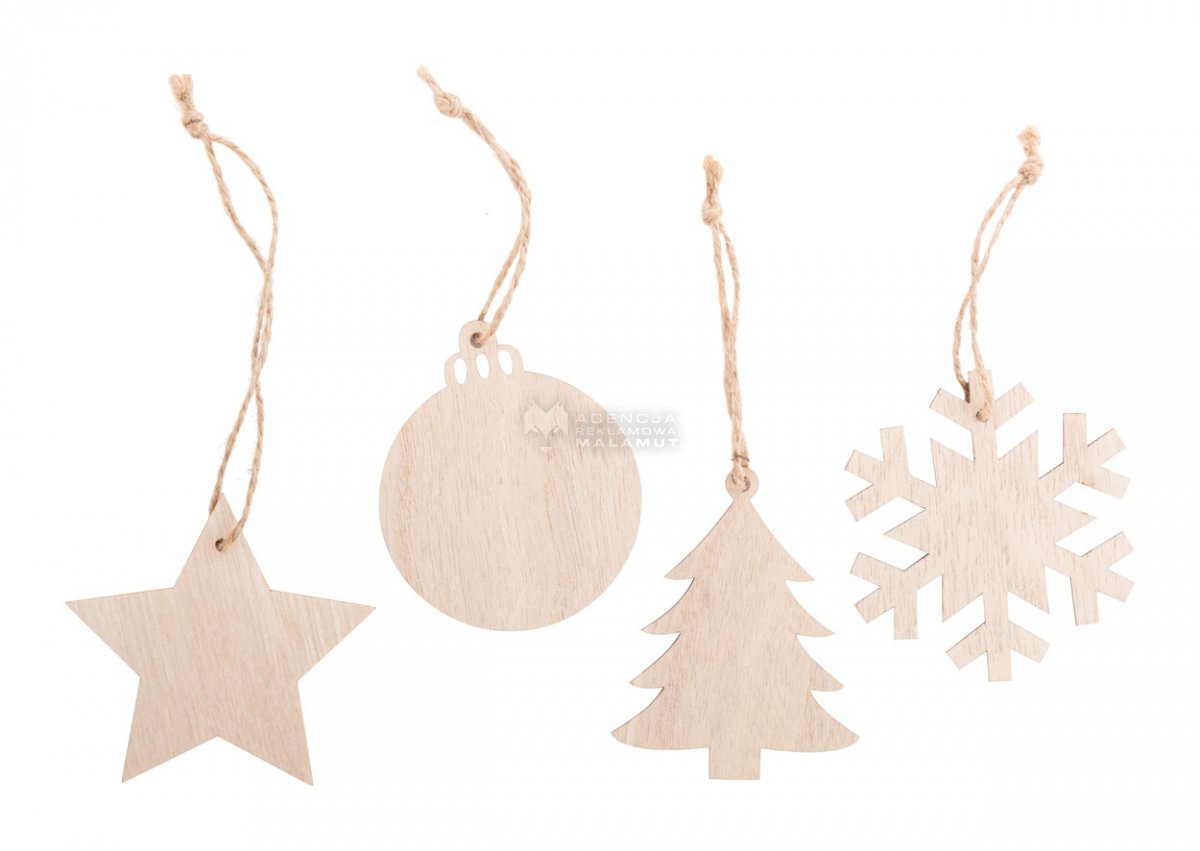 Drewniana ozdoba choinkowa ze sznurkiem konopnym.