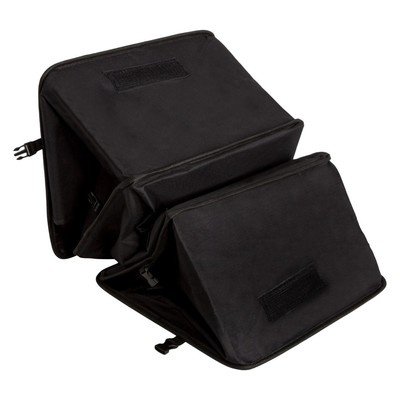 Składany organizer samochodowy z 2 dużymi przegrodami, przegrodą termoizolacyjną zamykaną na zamek błyskawiczny, 2 bocznymi kieszeniami na rzep oraz 2 rzepami na spodzie.