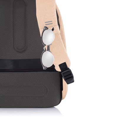 Plecak chroniący przed kieszonkowcami Bobby Hero Spring, wodoodporny i odporny na przecięcia materiał, wykonany z przyjaznego środowisku materiału rPET, ukryte zamki i kieszenie, wewnątrz miękkie przegrody na laptopa do 13,3" i tablet do 12,9", zintegrowany port USB do ładowania telefonów (power-bank nie jest dołączony), odblaskowe paski zwiększające widoczność, pasek do zamocowania na walizce, wzór zastrzeżony®