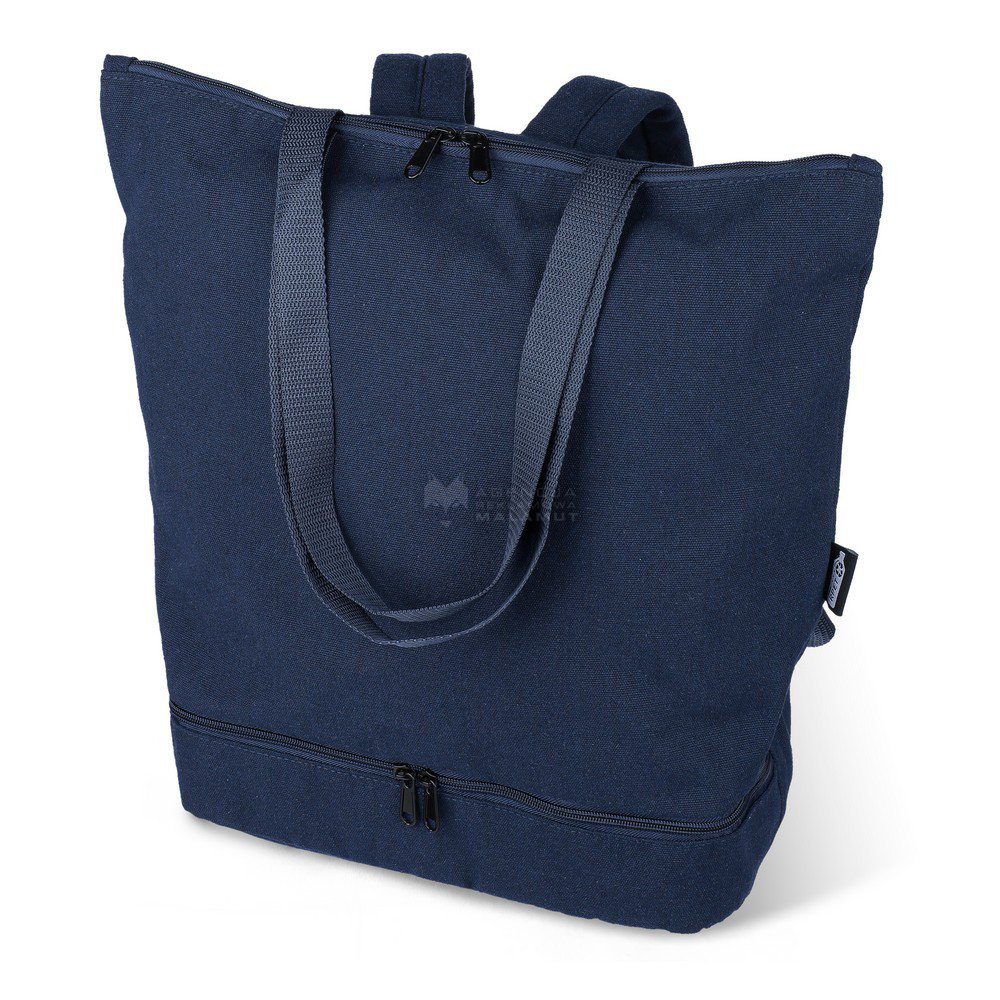 Plecak z funkcją torby na ramię, posiada dużą komorę zapinaną na zamek na górze, komorę zapinaną na zamek na dole, przegrodę na laptopa 15", dwie kieszenie wewnętrzne oraz jedną zewnętrzną kieszeń na zamek, konstrukcja obejmuje długie uchwyty do noszenia, wyściełane, regulowane szelki, pojemność: 30L, maksymalne obciążenie: 15 kg, produkt wykonany polibawełny z recyklingu (330 g/m²), podszewka z poliestru 210D