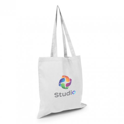Torba na zakupy, posiada długie uchwyty umożliwiające noszenie na ramieniu, produkt wykonany z bawełny o gramaturze 180 g/m2