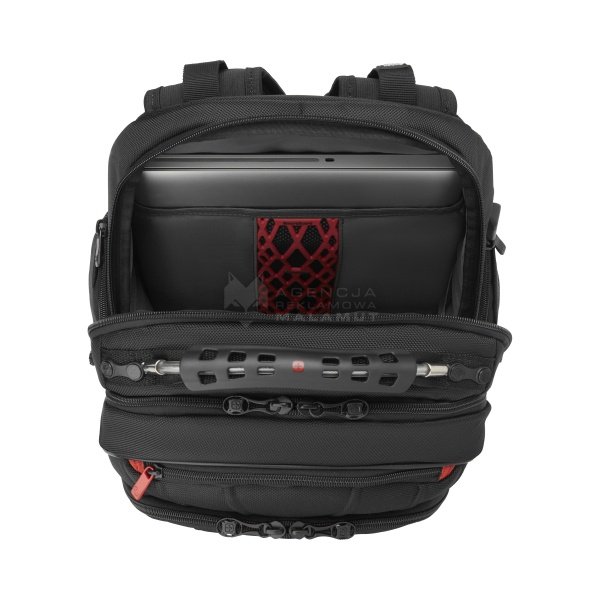 Plecak na laptop zawiera regulowaną przegrodę na laptopy o różnej wielkości: od 14 do 16” i osobną kieszeń na tablet do 10”. Wykonany z niezwykle wytrzymałego materiału balistycznego, wyposażony w panel-organizer na drobiazgi, boczną kieszeń na wodę czy parasolkę, „oddychający” panel tylny; pasek Pass-Thru, który wsuwa się na uchwyt bagażu na kółkach, a także CaseBase, czyli platformę stabilizującą, która sprawia, że plecak postawiony na ziemi nie przewraca się. Dodatkową zaletą jest wewnętrzna kieszeń na power bank oraz specjalny otwór, który pozwala wyprowadzić na zewnątrz kabel do ładowanego właśnie telefonu czy innego urządzenia. Gwarancja producenta: 3 lata.