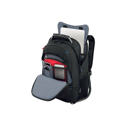 • Lekki i komfortowy plecak Carbon na laptopa oferuje wygodne przechowywanie komputera przenośnego MacBook 17` oraz wszystkich akcesoriów niezbędnych w ciągu dnia • Usztywniona przegroda chroni maksymalnie 17-calowy przenośny komputer MacBook Pro • Platforma stabilizująca utrzymuje plecak w pozycji pionowej • Tylna wyściółka umożliwiająca przepływ powietrza sprawia, że użytkownik utrzymuje swoją temperaturę • Amortyzujące paski naramienne • Wzmocniony ergonomiczny uchwyt • Kieszeń Quik Pocket zapewnia łatwy dostęp do niezbędnych akcesoriów • Organizator na niezbędne akcesoria • Siatkowe kieszenie boczne • Rączka Pass-Thru wsuwa się na system uchwytu bagażu na kółkach, ułatwiając dzięki temu podróżowanie