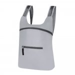 Składany plecak z zapięciem na zamek błyskawiczny, regulowane paski na ramię umożliwiające dopasowanie ich długości do własnych preferencji, produkt wykonany z poliestru 210D RPET