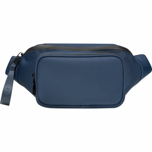 Pojemna saszetka wykonana z nylonu 400D i poliestru. Posiada dwie kieszenie zamykane na zamek i regulowany pasek.