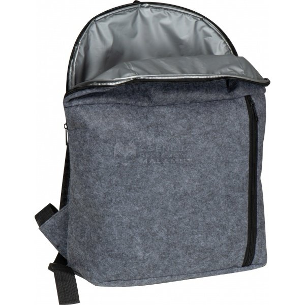Plecak termiczny z filcu RPET, z główną komorą chłodzącą i małą kieszonką na zamek z przodu.
