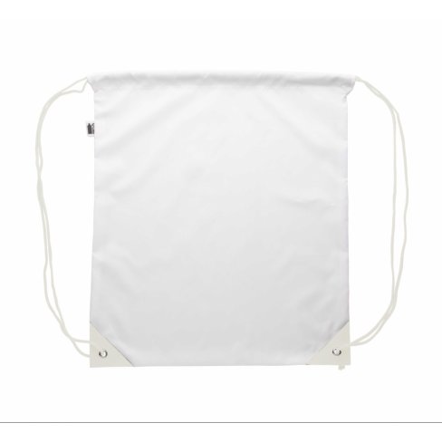 Personalizowany worek ze sznurkami ze wzmocnionymi rogami ze skóry PU i sznurkami w tym samym kolorze, poliester 190T RPET. Z nadrukowaną grafiką sublimacyjną i metką RPET. Min. ilość: 50 szt.