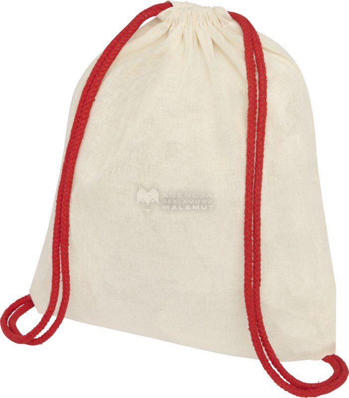 Plecak Oregon ściągany sznurkiem z kolorowymi sznureczkami, wykonany z bawełny o gramaturze 100 g/m² 120489