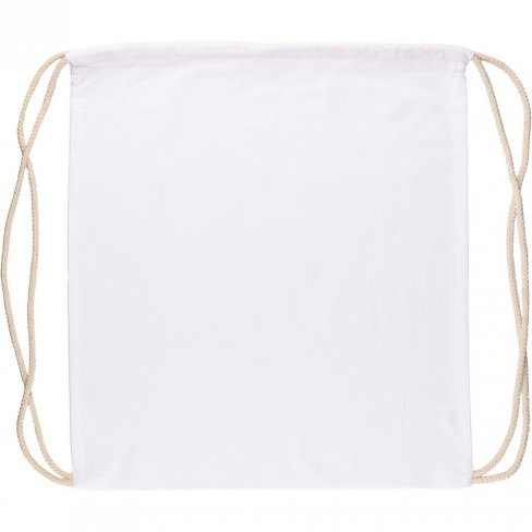 Worek ze sznurkiem umożliwiającym noszenie na plecach, pomieści drobne zakupy lub strój sportowy na siłownię, maksymalny ciężar nośny 8 kg, ikona OEKO-TEX na metce, produkt wykonany z bawełny barwionej OEKO-TEX o gramaturze 140 g/m²