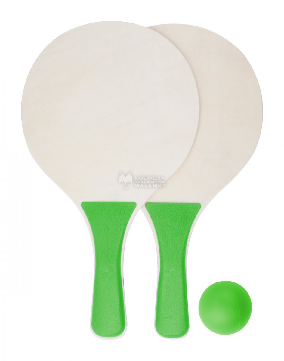 Zestaw do tenisa plażowego - 2 rakiety i 1 piłka, produkt wykonany z drewna i plastiku.