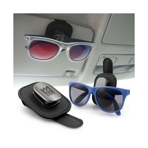 Klips na okulary Exclusive Collection, nadaje się do zawieszenia w samochodzie, ułatwia przechowywanie oraz korzystanie z okularów podczas jazdy, produkt wykonany z PU i metalu